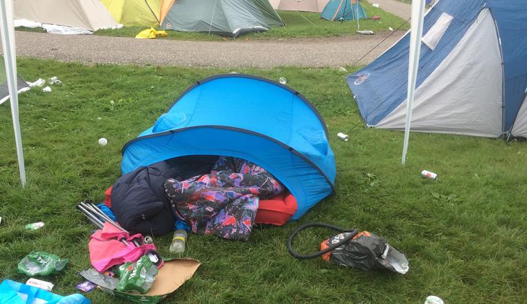 Dit zie je best veel gebeuren. Het lijkt ideaal, om bijvoorbeeld vuil makkelijk uit de tent te kunnen veten. Totdat het gaat regenen… Dan wordt het een watervanger - en drijf je dus in je tent 😅.