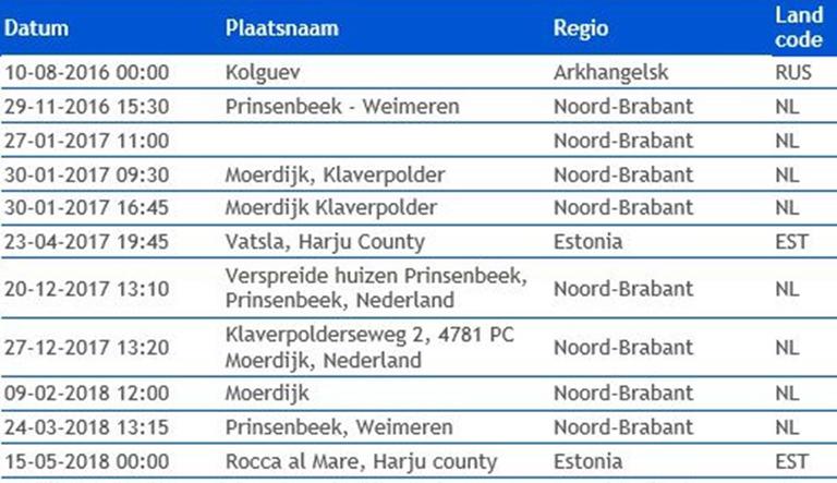 Uit deze tabel kan je opmaken dat deze gans in 2016 geringd is op het Russische Eiland Kolguev, en dat ze voor het laatst is waargenomen in het Brabantse Moerdijk. Elke zomer maakt ze een uitstapje naar Estland, om vervolgens elke winter in de buurt van Breda te verblijven.