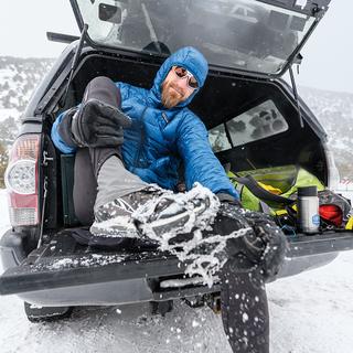 Hij is heel warm en uitermate goed bestand tegen vocht, wat het tot een ideale outdoorjas maakt. Zeker voor dit soort kleine adventure trips. De nacht valt en omdat we morgen weer vroeg uit de veren gaan voor het tweede deel van ons miniavontuur, kruipen we bij een knisperend kampvuur in onze bivakzak en vallen onder een fonkelende sterrenhemel in slaap.