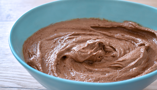 Terwijl de taart afkoelt, begin je aan de vulling. Klop hiervoor de slagroom lichtjes op. Meng vervolgens de kastanjepuree en de poedersuiker erdoor. Haal de afgekoelde taart uit de bakvorm en snijd ‘m horizontaal doormidden, zodat je twee lagen hebt. Is je taart een beetje ingezakt? Draai 'm dan om, zodat je bovenkant mooi glad is. Smeer de vulling met een mes over de onderste helft van de taart en blijf daarbij iets van de randen, zodat de vulling straks niet mengt met het chocoladeglazuur. Wanneer alle vulling over de taart is verdeeld, leg je de andere helft erbovenop.