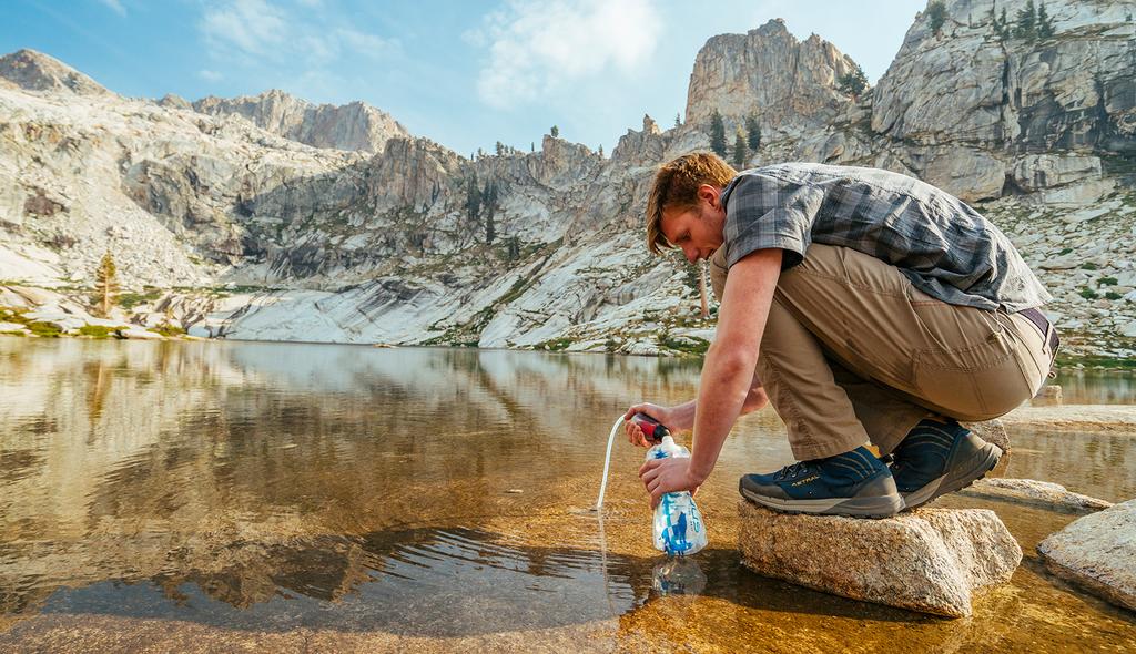 Plastic flesjes water kopen is natuurlijk echt niet meer van deze tijd. In plaats daarvan vul je een eigen waterfles of drinksysteem. Ben je bang dat je onderweg niet genoeg waterpunten tegenkomt om je fles te vullen? Dan kun je tijdens je wandeling gebruik maken van een waterfilter om gletsjerwater te zuiveren.