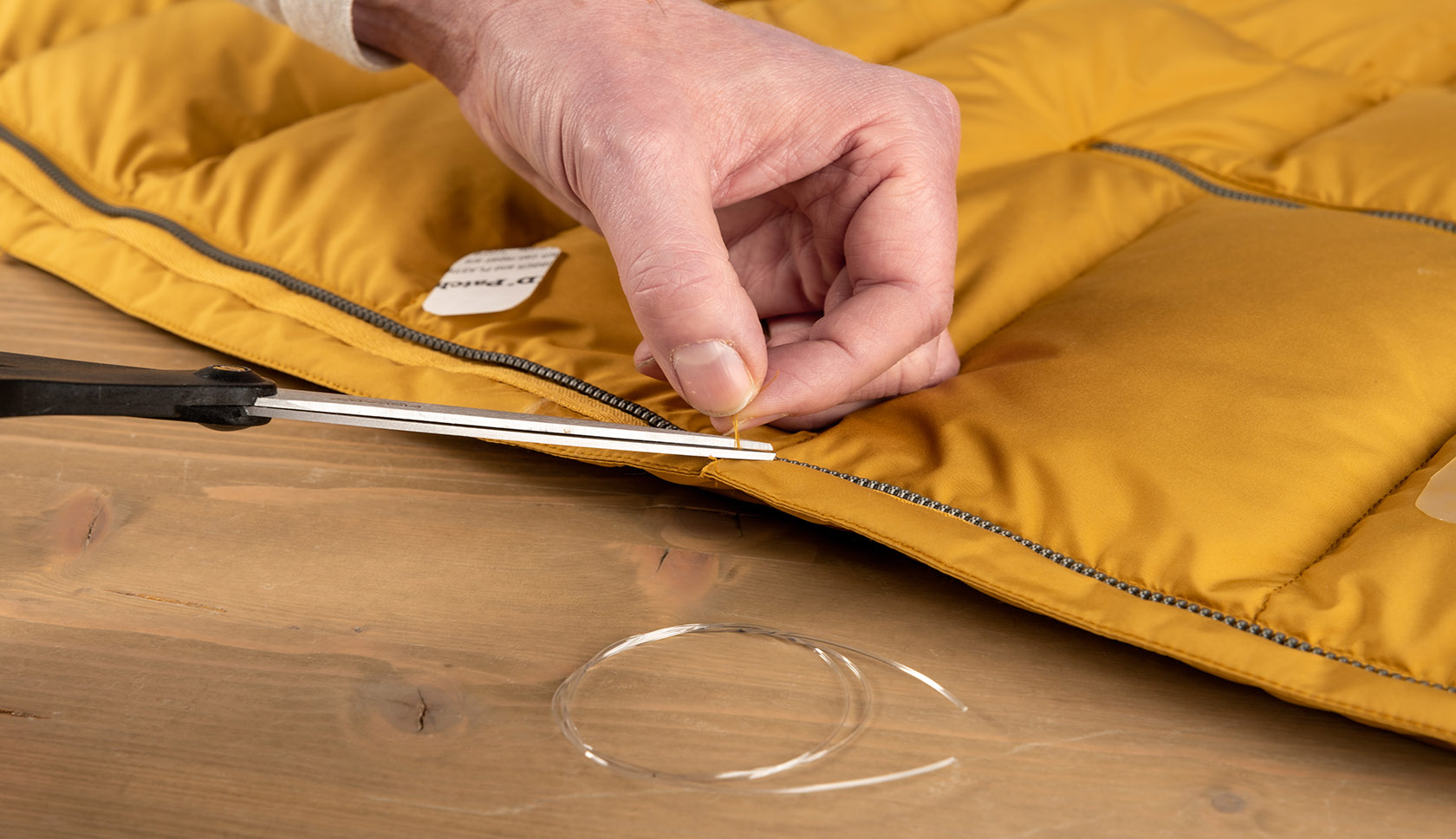 Zit de scheur aan de zijkant van je donsjas? Hier lees je hoe je die repareert.