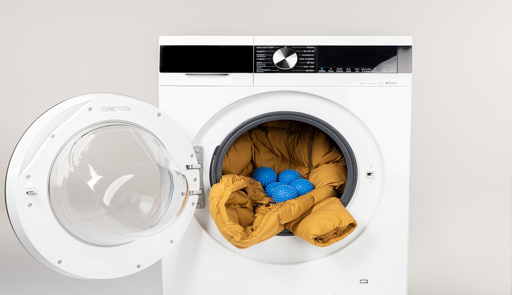 Voordat je je jas in de wasmachine gooit, lees de wasvoorschriften zorgvuldig door. Op het waslabel van je donsjas en de instructies op het wasmiddel vind je belangrijke informatie.